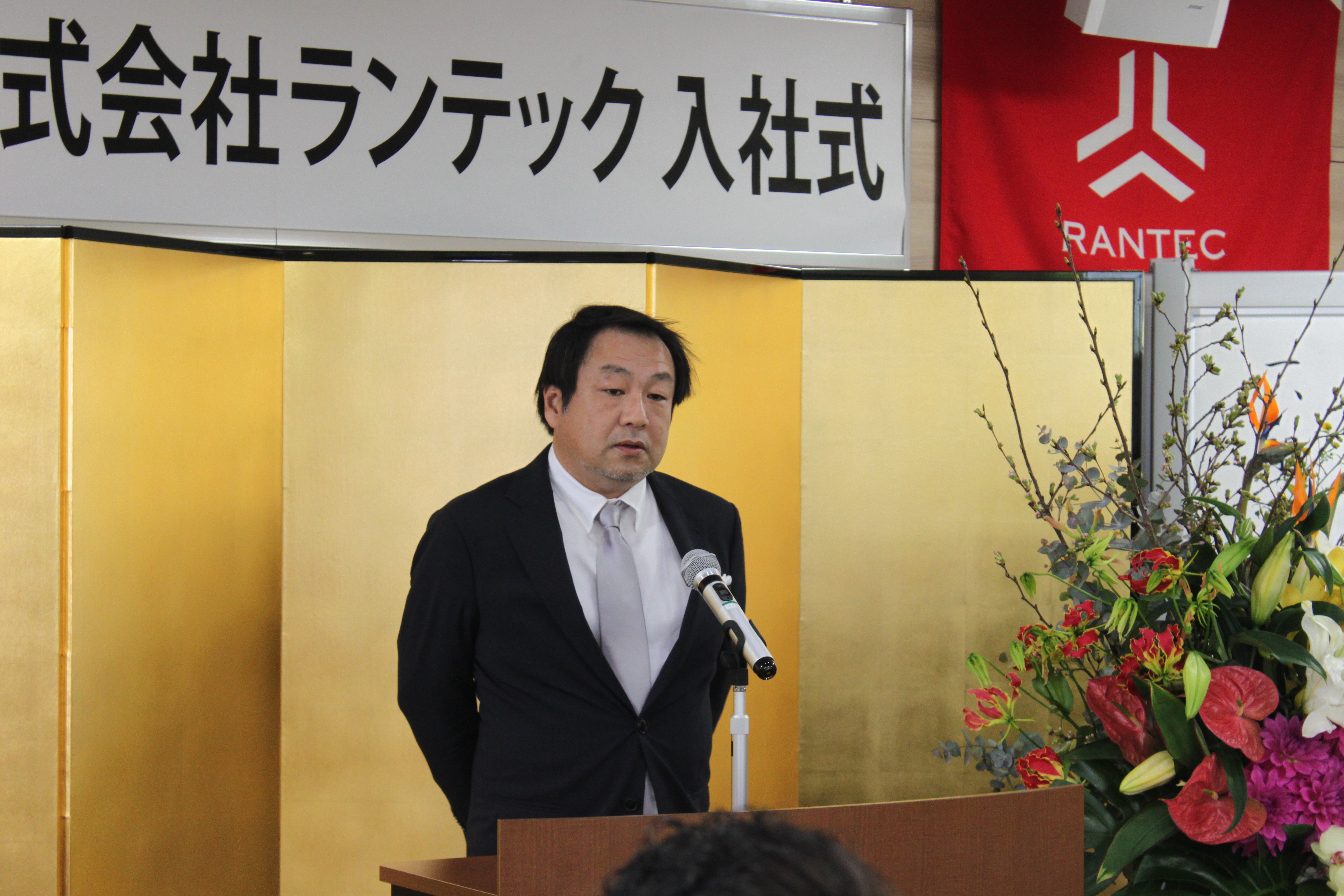 来賓として県議会議員 佐藤光氏に本年もお越しいただき「若い力で会社の支えとなる、そして建設業界の支えとなる人材となっていって頂きたい」と新入社員へ大変ありがたいお言葉を頂きました。
