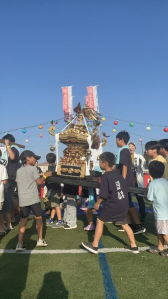 カルペソール湘南スポーツパークがある堤の皆様からは地元祭囃子太鼓保存会様のパフォーマンスや神輿を持ってきていただき参加者の皆さんで担ぎました。
